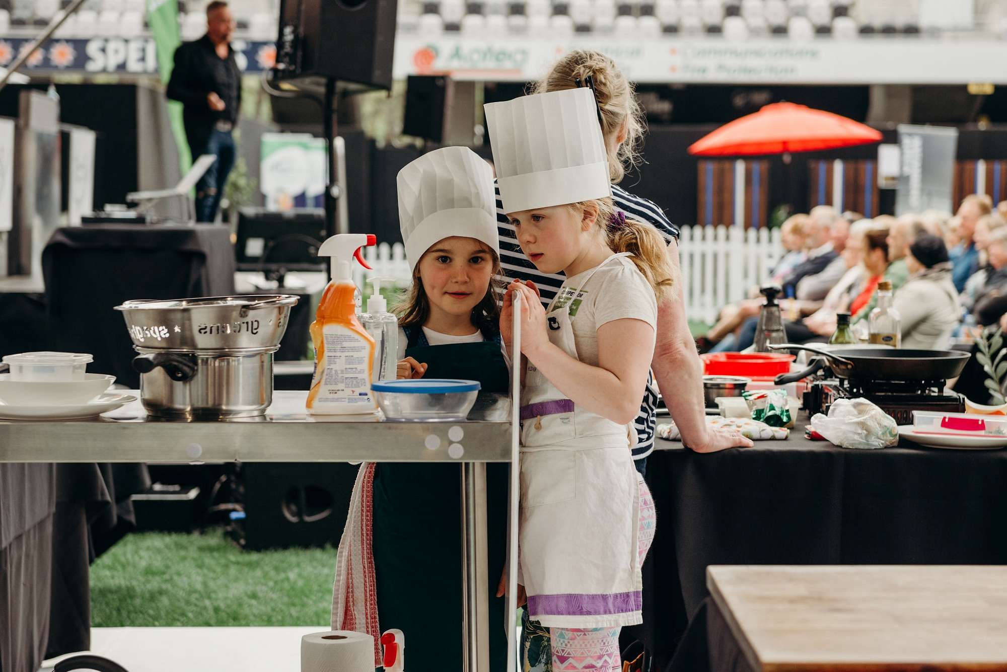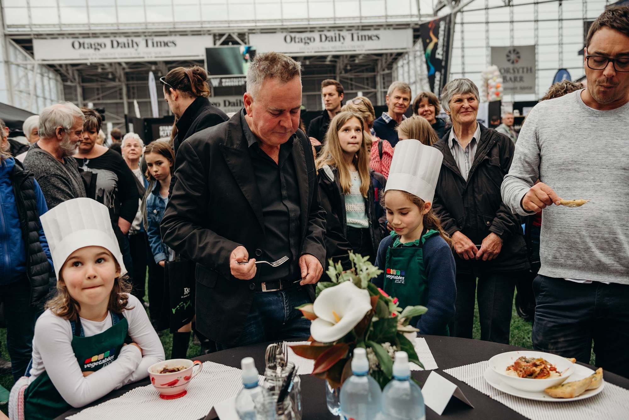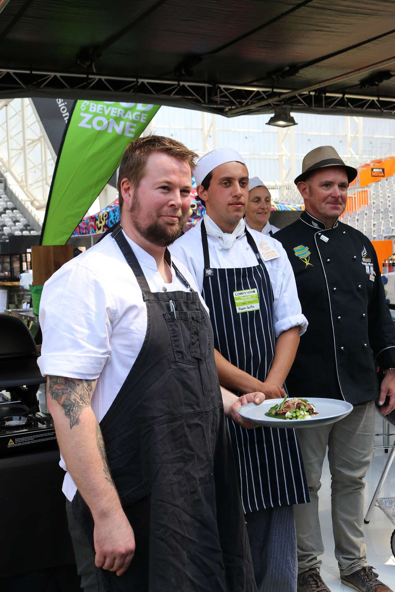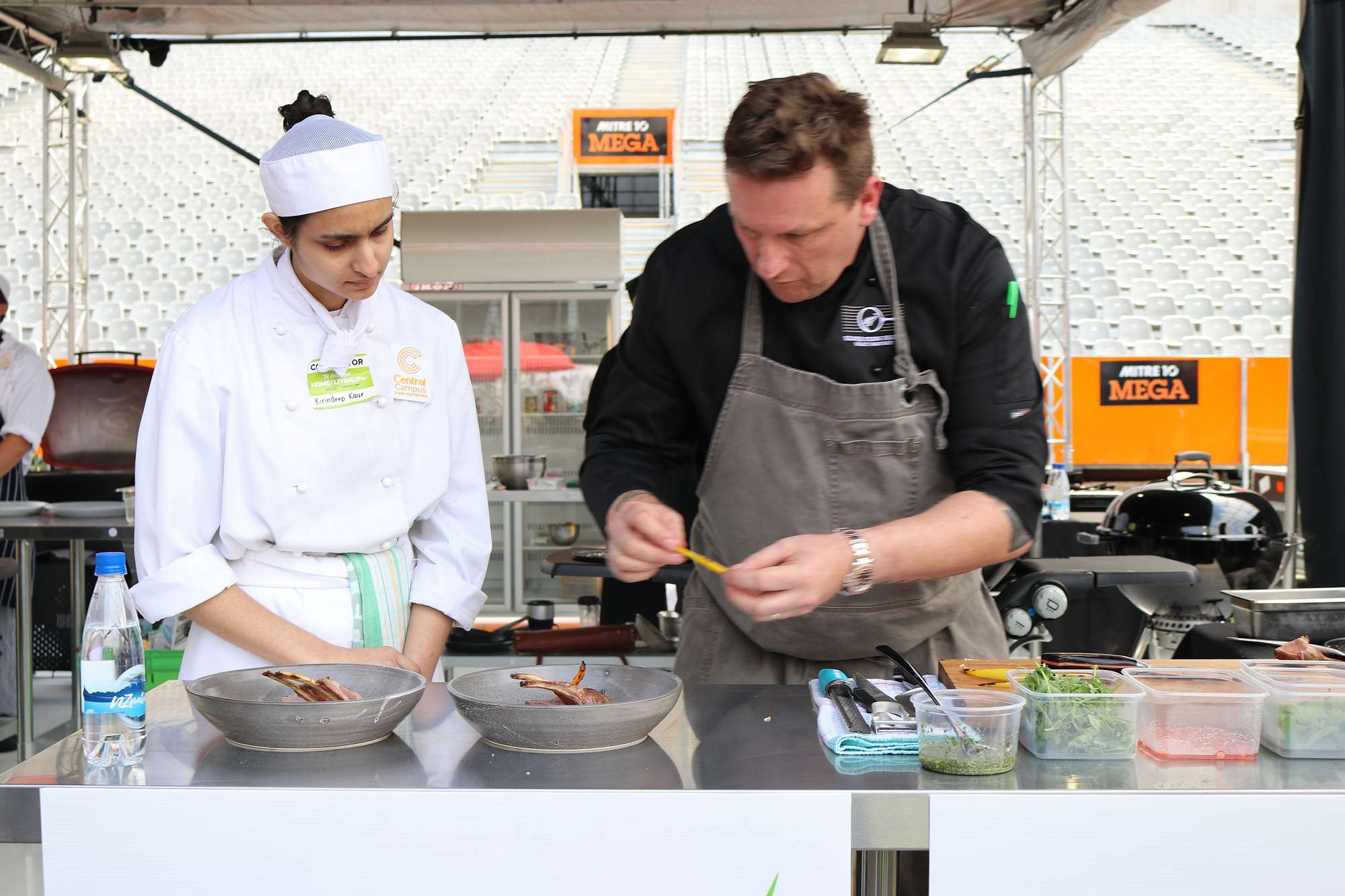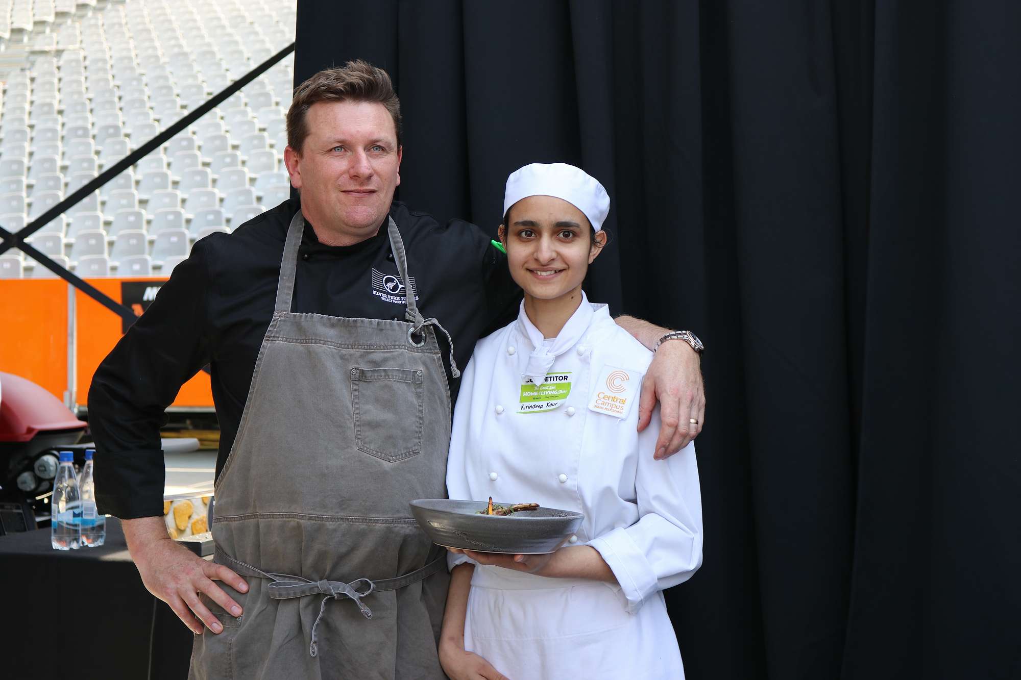 A great line up of chefs kicked off the Farm to Fork Chef Challenge on Sunday under the roof. Greg Piner & Kirindeep Kaur, Sam Gasson & Rawiri Griffin, Ken O’Connell & Dylan Robins, Hannes Bareiter & Astrid Seiler took to the competition stage to prepare an entrée and a main course from a mystery box of ingredients.