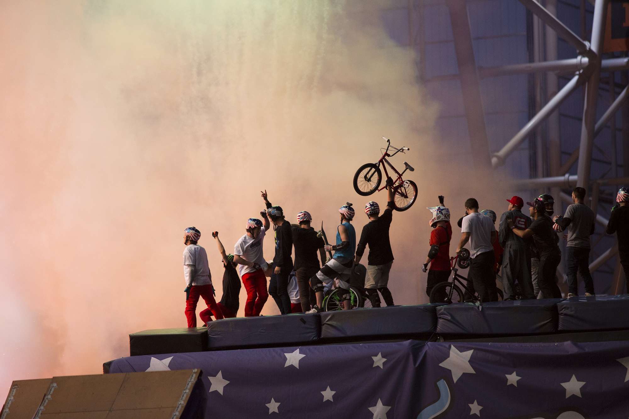 An entourage of 40 riders who captured the total fixation and imagination of the likes of 8 year old Gus, managed to engage him visually for two hours in the manic action packed organised chaos of acrobatic leaps and jumps: forward; backward; triple; quadruple on FMX motorbikes; BMX bikes; rollerblades; skate boards; a rocking horse and cowboy; Barbie doll car; trikes; snowboard and pretty much anything with wheels. Unbelievable records were set – a Canadian female rider – Jolene Van Vugt, whilst nursing an injury, completed a jump which she had been attempting previously effortlessly; a young motorbike rider completed a quadruple backflip for the first time ever which has never been seen in New Zealand before.