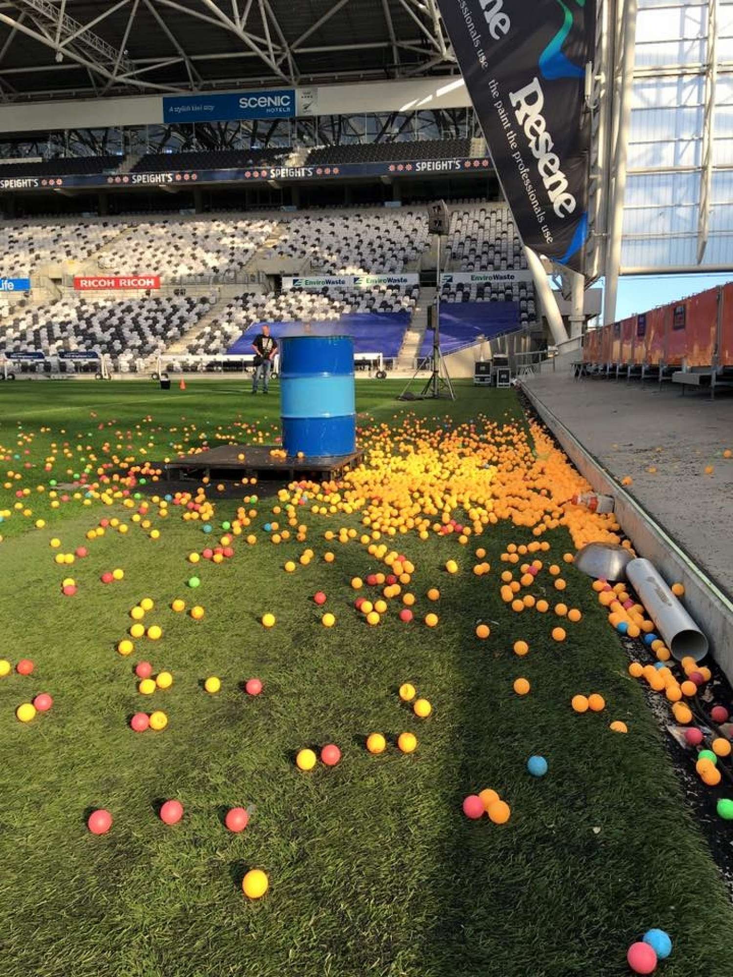 The science class ended with a fun experiment involving a liquid nitrogen explosion sending 4000 multi-coloured ping pong balls flying over the pitch!
